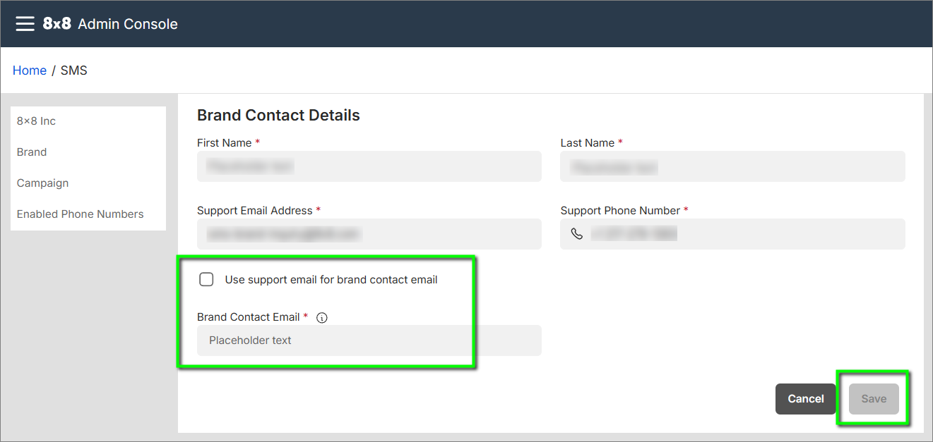 - Once changes are saved, 8x8 will forward your authentication to The Campaign Registry (TCR). TCR will send you an email with step-by-step instructions to complete the email address setup.