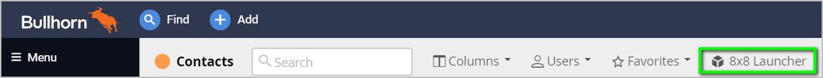 - The 8x8 Launcher link has been added to one of these four supported Bullhorn object types: