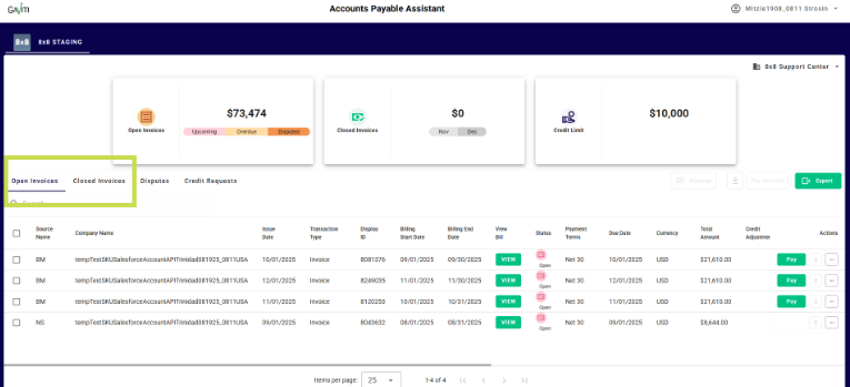 4. Click on the "Open" or "Closed" invoices tab to view or search for the invoice you are disputing.