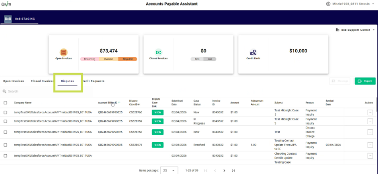 12. Click the Disputes tab to view all your submitted dispute cases. The Dispute Tab provides you with easy access to monitor all submitted billing dispute cases that are specifically tied to an invoice.