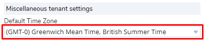 - Under Miscellaneous tenant settings, select the desired time zone from the dropdown menu.