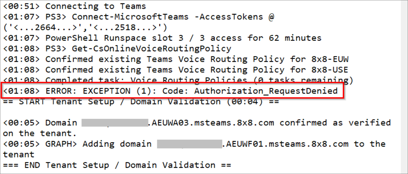 - ERROR: EXCEPTION (1): Code: Authorization_RequestDenied