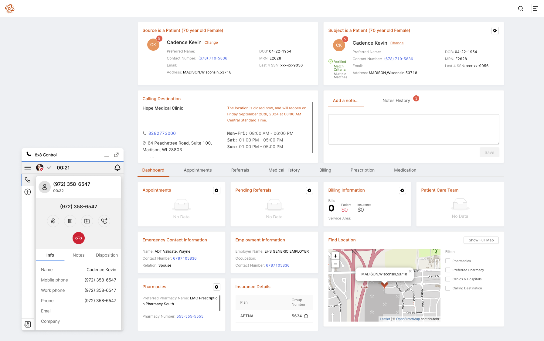 8x8 Work is supported for SpinSci’s Patient Assist, which launches the Patient Assist web page related to the patient's phone number.