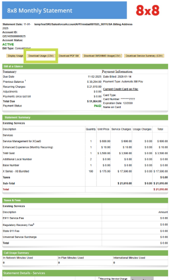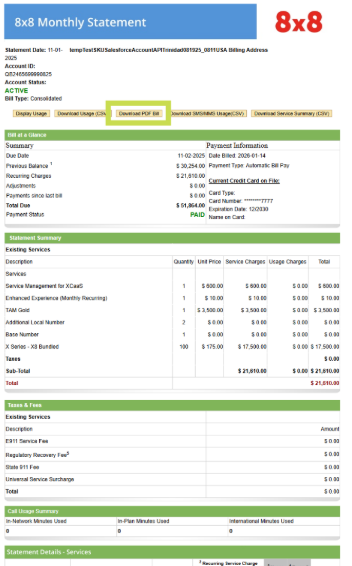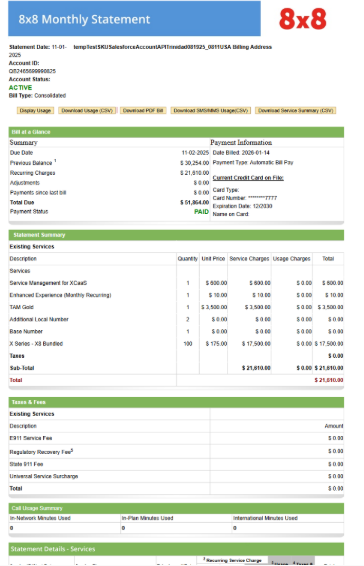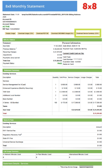 View or Download your 8x8 Billing statement, Usage & Service Summary.