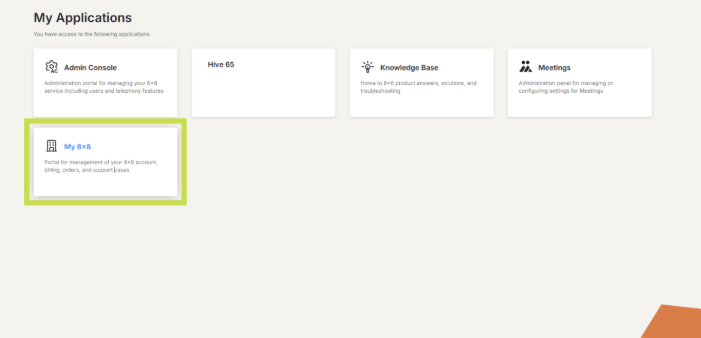 1. Navigate to the "My 8x8" tab to start managing your account and billing details.