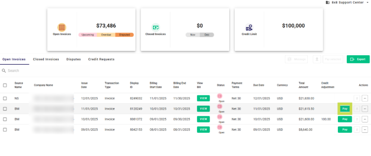3. After selecting the invoices or the specific invoice you wish to pay, click the "Pay" button.