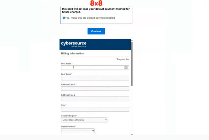 4. After clicking the "Pay Now" button, you will be redirected to the Cybersource payment page. Here, you will enter your payment information. Additionally, you can designate your card as the default payment method by checking the box at the top.
