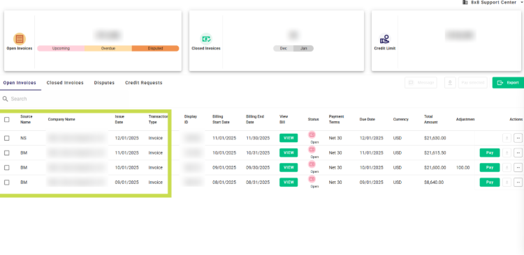2. You will be redirected to our billing portal and the open invoice tab. Here, you can choose to pay either a single invoice or multiple invoices by selecting the checkbox next to the past due invoice line.