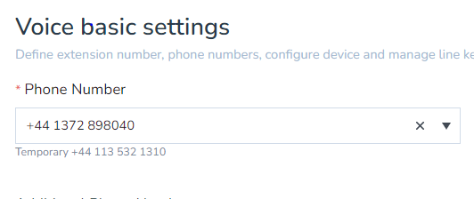 - Your users should now be populated. When viewing a user's Voice Basic Settings, you should see the number being ported assigned and the temporary number underneath.