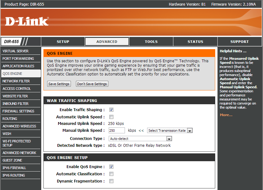 - Go to Advanced > QoS Engine. This will bring up your QoS settings (bandwidth management).