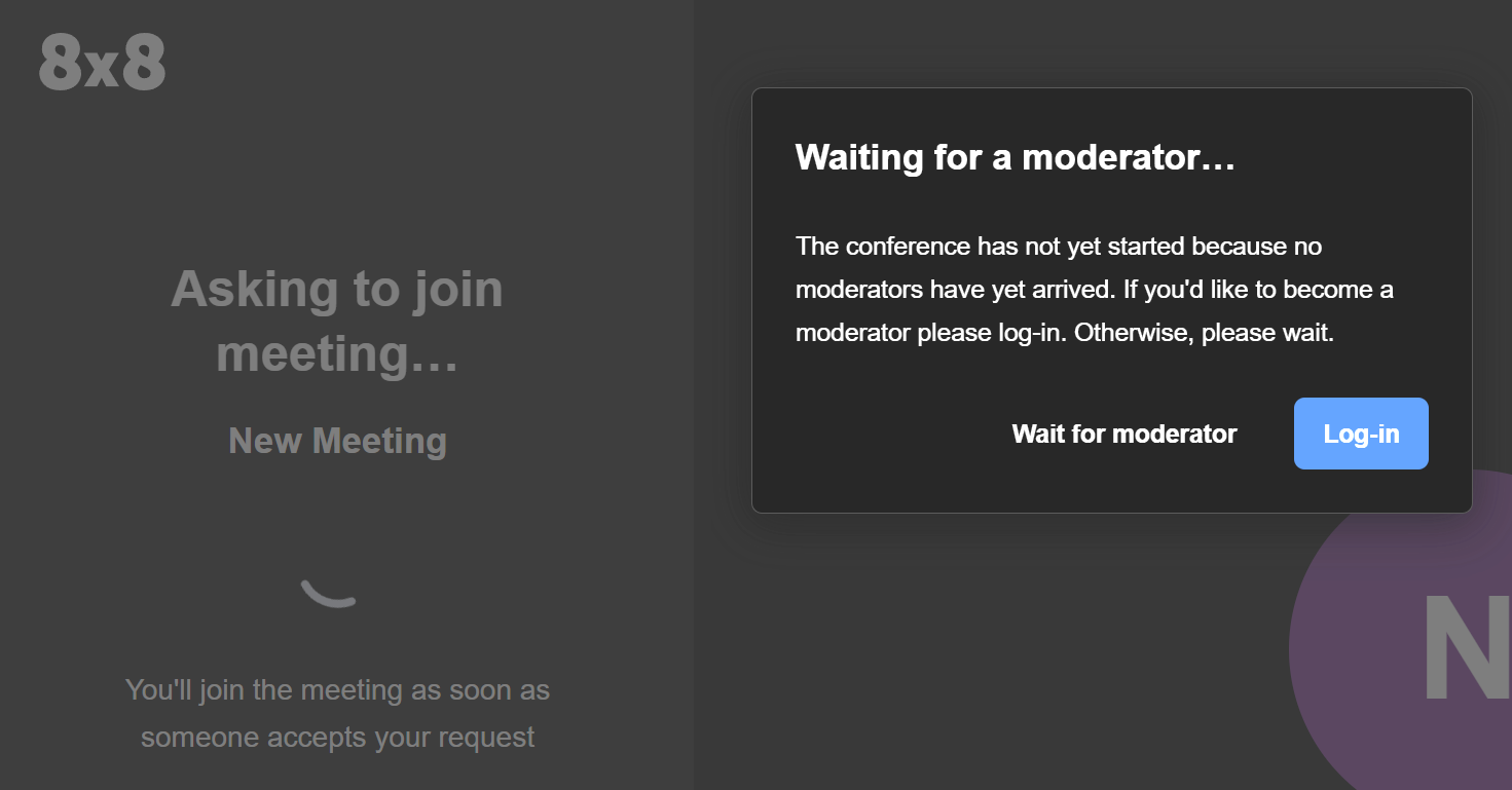 - Click Log-in in the Waiting for a moderator popup, and then sign in with valid 8x8 credentials.